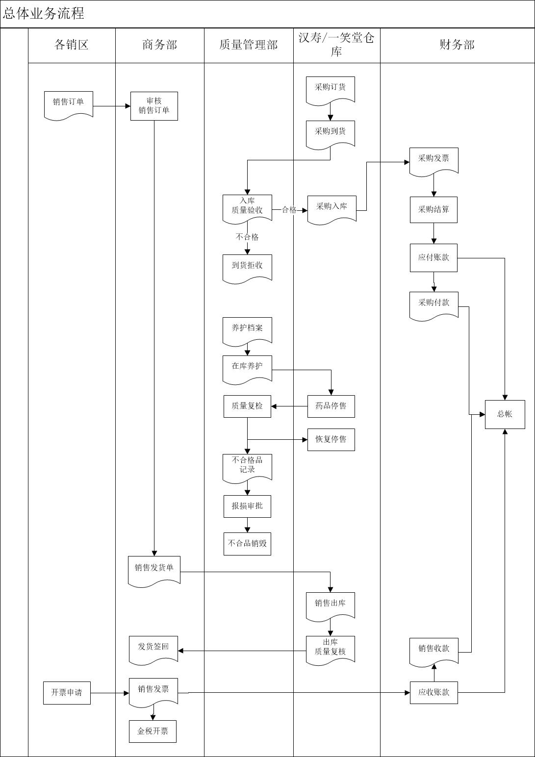 10、銷售部根據(jù)銷區(qū)寄回的銷售合同和和客戶方的入庫單生成“發(fā)貨簽回單”。發(fā)生銷售退貨時(shí),由銷售部開具“銷售退貨單”,質(zhì)量部對退回藥品進(jìn)行檢驗(yàn)。