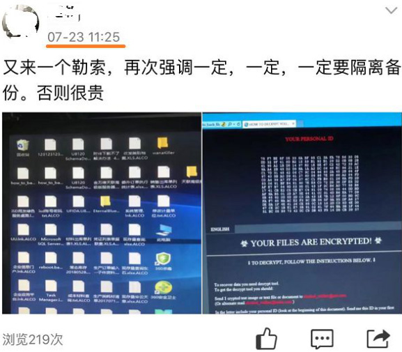 一年前肆掠的勒索病毒再次死灰復(fù)燃,新的變種開始在全國范圍蔓延,我們U8的個別客戶也未能幸免。