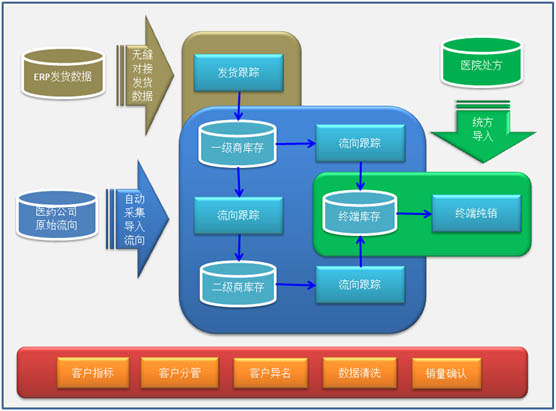 金客寶藥品流向管理系統(tǒng)是一套基于B/S架構(gòu),互聯(lián)網(wǎng)模式的,為制藥企業(yè)量身定制的藥品流向采集與流向管理軟件。包括流向自動采集(網(wǎng)頁版、直連版),流向自動導入,數(shù)據(jù)清洗與轉(zhuǎn)換(即外部數(shù)據(jù)轉(zhuǎn)換為內(nèi)部數(shù)據(jù)),客戶庫存管理,純銷任務(wù)(指標)管理,純銷數(shù)據(jù)分析等。