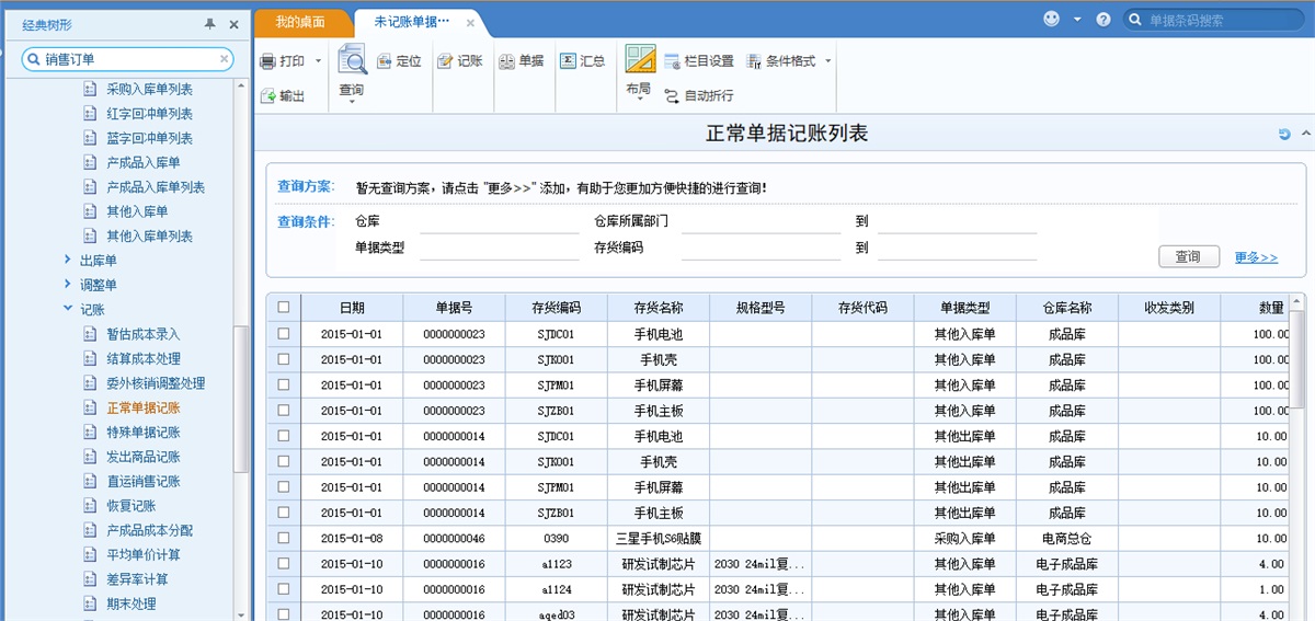 單據(jù)記賬用于將用戶所輸入的單據(jù)登記存貨明細(xì)賬、差異明細(xì)賬/差價(jià)明細(xì)賬,通過(guò)先進(jìn)先出、后進(jìn)先出、移動(dòng)平均、個(gè)別計(jì)價(jià)這四種計(jì)價(jià)方式的存貨在單據(jù)記賬時(shí)進(jìn)行出庫(kù)成本核算;全月平均、計(jì)劃價(jià)/售價(jià)法計(jì)價(jià)的存貨在期末處理進(jìn)行出庫(kù)成本核算